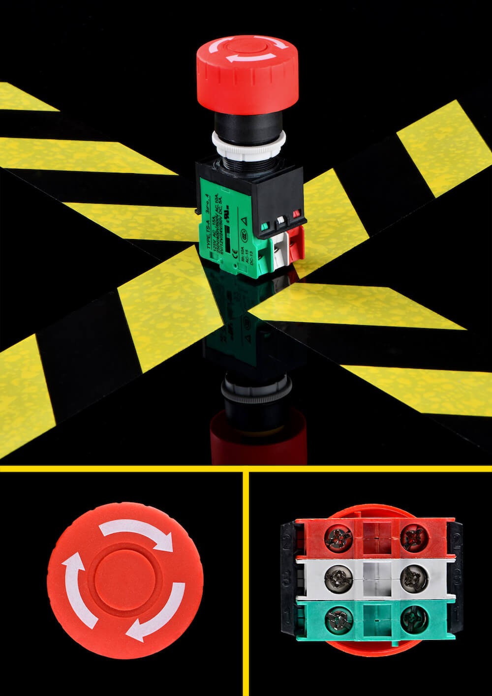 - Push-buttons (disc and mushroom-actuator type, momentary)